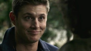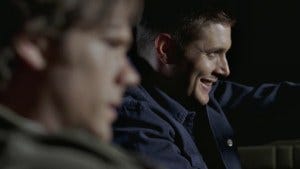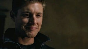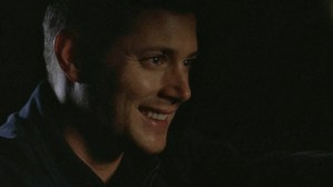 Dean shrugs, saying whatever, Sam’s alive, he feels good, for the first time in a long time.