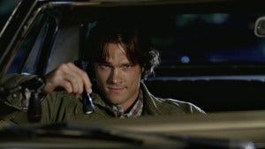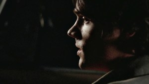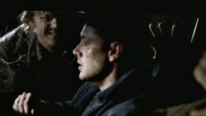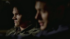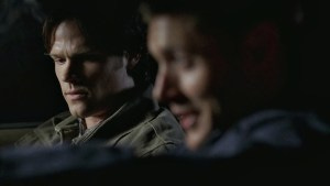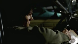I need to stop here to say that the cinematography in this episode is beyond amazing. Look at Sam’s profile, the way he’s lit in the dark car, it’s just breathtaking. All the kudos to the brilliant DP Serge Ladouceur! (He has a chapter in our book Fan Phenomena Supernatural, all about how he makes the show and the boys look the way they do).