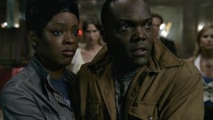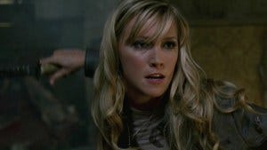 Pride attacks Sam, choking him, but the mysterious woman (ie, Ruby 1.0) slashes his throat with a knife, killing him.