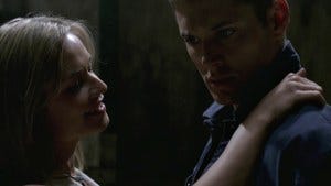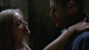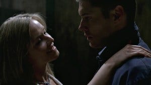 She runs her hand along Dean’s shoulder (that theme of Dean being violated again), and Dean dives in and kisses her.