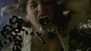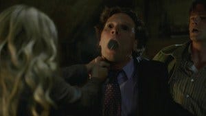 But just as we think he’s succumbed, he backs her up so he can shove her face into a tub of holy water.