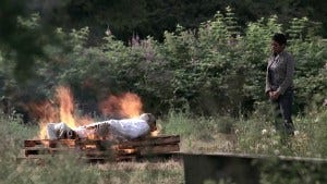 The next morning, Sam and Dean put the demons into a shallow grave and salt and burn them. There’s a hunter’s funeral for Isaac and a grieving Tamara.