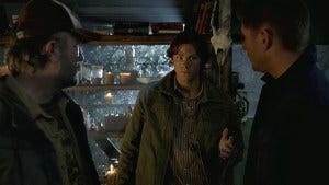 Bobby says he thinks he’s found something, so Sam knocks on the door and then doesn’t wait for anyone to respond before coming right in for some reason.