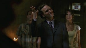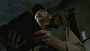 A demon who’s possessing Isaac approaches, and heartbreakingly, starts begging Tamara to help him, saying that he got away but he’s hurt bad and needs help. He tells her something that only Isaac would know, accuses her of letting their daughter die, and Tamara sobs, bursts out the door and attacks the demon, stabbing him uselessly.