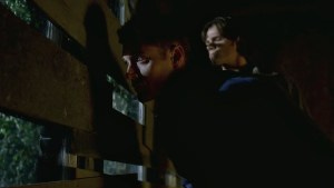 After Dean leaves, Ruby reappears and follows Sam. His hunter instincts make him suspicious he’s being followed, but when he turns around, no one is there.