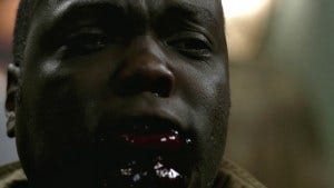 Dean, from the ground, hand raised in a comical hi: Helloooo, bleeding here…