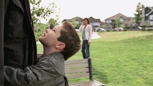 Dean, meanwhile, sees Ben sitting alone on a bench at the park, looking forlorn. Apparently a bully stole his Gameboy and won’t give it back. Dean offers to go get it, but Ben says no.