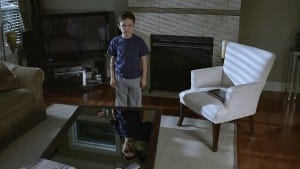 Back at Lisa’s, Ben is the creepy kid now, sneaking up on Lisa and trying to get her to play with him. She sees his reflection in the glass coffee table and demands to know where her actual son is.