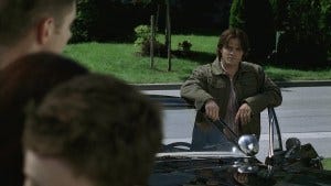 Ackles lets Dean’s vulnerability show loud and clear here, director Sgriccia and DP Serge Ladouceur using those trademark breathtaking close ups to do it.