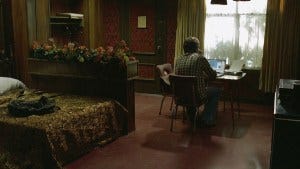 He confronts Ruby again at the motel, frustrated that she keeps insisting she can help him, but he knows she’s not being honest and he still has no idea who she is.