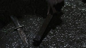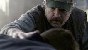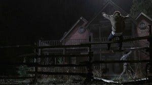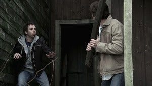 Sam eventually holds his own and gets Jake to the ground. He raises the iron bar Jake was using, thinking about killing him, but then puts it down.