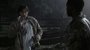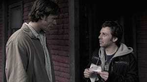 Ash calls and also doesn’t have anything on Sam, but says he did find something, and asks Dean to come to the roadhouse. I was so happy to see Chad Lindberg back in this episode (until the next scene….). This episode is filled with some of my favorite people – Chad and Gabe and Jim (and Jared and Jensen) all wrote chapters for Family Don’t End With Blood or There’ll Be Peace When You Are Done and had such emotional things to say about their time on Supernatural. But I digress…