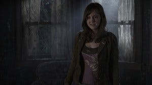 Back in Cold Oak, Lily tries to get away through the woods, hearing that ominous giggling from behind the trees. Uh oh.