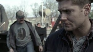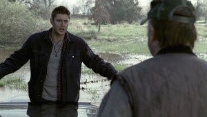 (Also poor Jim Beaver is wet as hell, and Dean looks ridiculously hot with little droplets of rain on his hair and the tip of his nose, just saying)