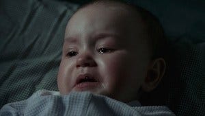 Sam, horrified, has to watch as his young parents worry about him as a baby in a crib, Sam trying desperately to warn his mother about what he knows is about to happen to no avail. He watches even more horrified as the YED drips his blood into the baby’s mouth – his mouth.