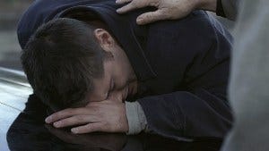 Bobby, who was already a father figure to the brothers, comforts him, hand protectively on the back of his neck.