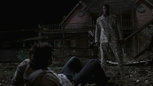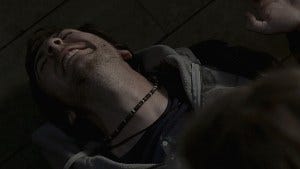 Sam tries to talk Jake into ignoring the YED and teaming up to kill him together, but Jake doesn’t trust him. In a show of trust, Sam lays down his knife on the ground.