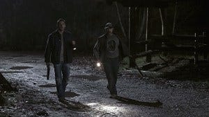 Dean and Bobby drive to the Roadhouse, and in what was a shocking scene when I saw this episode live, find the Roadhouse burned to the ground.