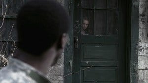Back in the western town, Sam has a tough time convincing the rest of the ‘special kids’ that it is a demon and that they should stick together. Jake thinks he’s better off away from any “whack jobs” and tries to leave. All the shots in the Bordertown set are gorgeous; thunder cracks as Jake walks down the deserted street.