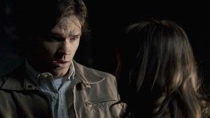 Sam breaks the news to her that it’s been five months as Ava worries about her fiancé Brady (a common name for hapless Supernatural characters who have something to do with the demon). You have to give Ava all the points for acting, she really pulls it off. (Kudos to Katharine Isabelle!)