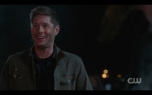 As both Winchesters sit there looking glum, Dean breaks out one of his inspirational pep talks. Again, it played very differently than it usually does in the context of both the meta and the current reality the Winchesters are living in – in which it doesn’t make a whole lot of sense the way it usually does.
