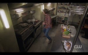 Dean eats seven grilled cheese sandwiches and then doesn’t think to take all the weapons in the trunk into the monster haven because apparently a lot of the Winchesters’ smarts were also just Chuck pulling the strings and suddenly this is not nearly as funny as it was.