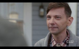 They get to Garth’s, and he and his wife have an older daughter and young twins (sort of like Ackles in real life!) Garth hugs Dean, saying “you smell so good” (this nod to Dean’s attractiveness seems like a bit of a meta commentary – since it’s what everyone who has ever had a photo op with Jensen Ackles walks away saying!) It also ties into some of the more thinky thoughts I eventually let into consciousness about the episode.