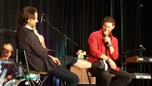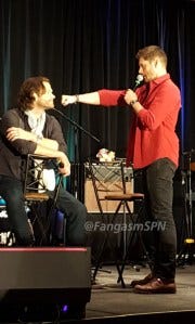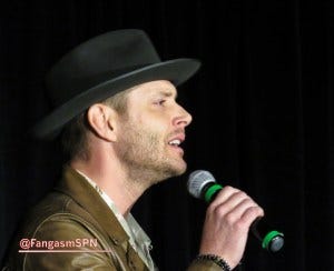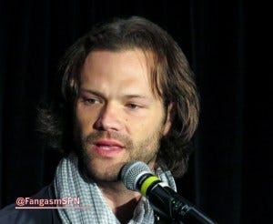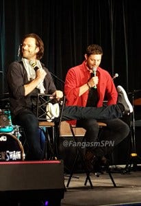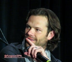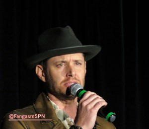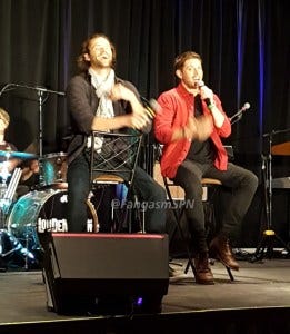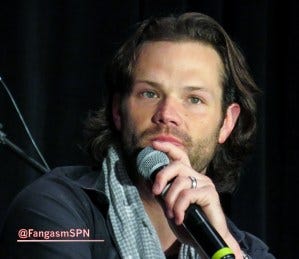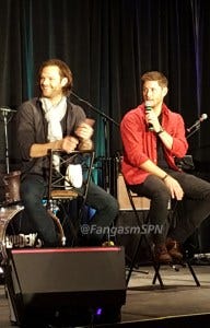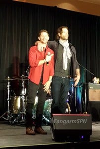 At one point a fan in the audience got emotional trying to tell J2 what this show and these characters have meant to her. Jared got emotional too, running into the audience to hug her and tearful when he returned to the mic. Jensen accepted a pack of tissues from a fan and tossed them to Jared.