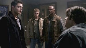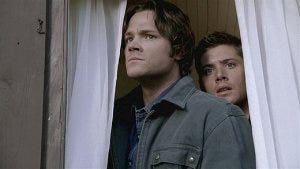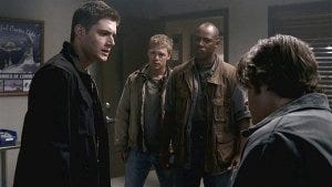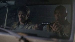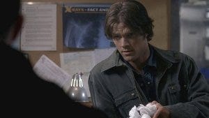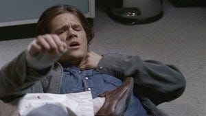 Luckily the Winchesters are smart. Sam figures out how to manufacture some explosives from the medical supplies and chemicals in the clinic. When Duane pounds on the door, they let him in – and Sam and Dean realize he’s the one that Dean shoots in Sam’s premonition. It amps up the tension even more, because neither we nor the brothers know whether Duane is telling the truth about where he was or not.