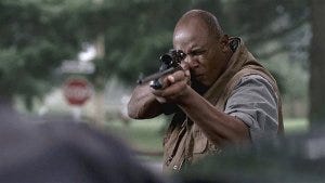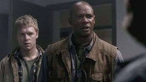 A little while later, he’s stopped by the first guy he met (Mark) blocking the way, armed with a rifle. They have a stand off, each insisting they’re not infected, before finally deciding to proceed together.