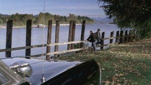 This episode had such an impact on us that on one of our first trips to Vancouver, Kathy and I made a fan pilgrimage to the iconic fence by the river – which turned out to be alot harder to find than we’d anticipated. Along with two other local fans, we searched most of the day, finally finding the location close to midnight. In the pitch black darkness, sans flashlight, we clambered down the hill to the river, joyous at finding the fence – until someone with a very large flashlight showed up. The local police.
