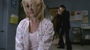 When the doc goes to examine Mrs. Tanner, she suddenly attacks with a scalpel. Sam jumps into action and knocks her out with a fire extinguisher like the badass hunter he is, luckily.