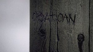 There’s a shot of the telephone pole with the one word, ‘Croatoan’, carved into it.