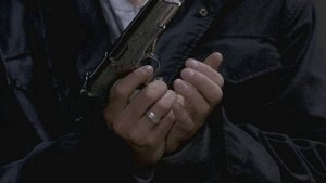 He finally lowers the gun, cursing. Sam got through to him after all.