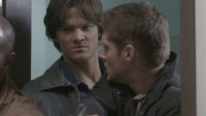 It’s an argument over something that hasn’t even happened, but it gives us some insight into the tension still simmering between Sam and Dean. Dean is worried about Sam’s visions and what might be happening to him (especially in light of what John said to him, though we don’t know that yet) and Sam is worried about Dean, who’s on edge and volatile (partly because of the burden he’s carrying that John put on his shoulders). No wonder they’re sniping at each other.