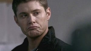 Dean tries to deflect when Sam says he’s going to keep on asking, that Dean can’t pull that crap with him.