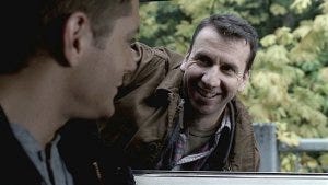 They approach Mark and say they’re looking for the guy who Dean supposedly shoots, describing him and saying he’s not in trouble, they just need his help to find someone else. The guy is reluctant to talk to them, but Dean is smart and notices a tattoo on his arm that gives him an in.