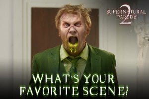 Number 1. One of the things that makes your parodies so brilliant and so loved by fans is that you really GET the show you’re parodying, maybe Supernatural more than even the other shows you’ve parodied. You were able to reproduce the show itself with the level of detail that fandom relishes – the kitchen set from Changing Channels, the library in the Men of Letters bunker, the proton packs with Dean’s little army man and the Colt and Sam’s with Ruby’s knife. Some of the scenes looked so eerily similar, like that iconic moment when Dean fires the Colt and kills Azazel in slow motion. How do you decide what scenes and what details to include and how much detail to put into it? It must take so much time!