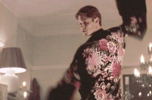 The poor fandom is terribly conflicted, trying damn hard to hate Soldier Boy and replaying his adorable musical number and drags on cigarettes and other substances that should not be sexy and oh right, there’s that whole bare thigh thing going on. Long-time fans of Ackles like me also immediately were reminded of another film he did even before Supernatural, in which his character Eddie G memorably wore a floral silk robe (and did some sexy dancing too). My timeline is full of stills from the two decades old film “Blonde” today, just like I knew it would be.