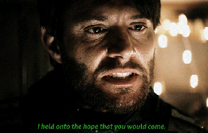 And you can see the moment he closes the vulnerable, wounded part of him off – his eyes go steely, cold. His mouth and his chin stop quivering as he sets his jaw with determination. It’s a long practiced skill likely, and one we don’t yet know why or when it was perfected, but Ackles shows it happen in real time and we can all interpret it easily.