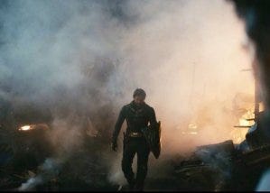He eases a drugged MM to the ground, and then we see Soldier Boy emerging from the misty night. A close up of his super suit, his legs, his boots, his shield.