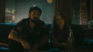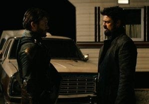 For himself, however, Butcher is committed to taking the drug that will even the playing field. Maeve brings him more, and he offers her a drink, both of them breaking their sobriety in increasing desperation, side by side on a couch in the dark trying to figure out how to take down Homelander. In spite of their shared revenge mission, and in spite of becoming a Supe himself at least temporarily, Butcher’s hatred for Supes remains. Kripke has likened it to racism, and it’s just as impervious to logic or anything else.
