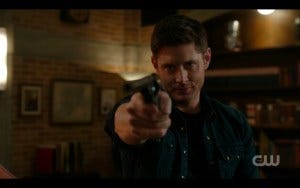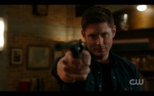 Dean takes it out, holds it up, sights down the barrel. Flashbacks from the early seasons, Dean shooting Azazel with this same gun, make the emotion well up in me.