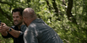 The Rangers find the guy who called in the bomb threat, Travis Pike, an ex con who served time for arson. Walker and Micki confront him and manage to knock the gun out of his hand and knock him flat. He reaches for the gun, but Walker stays in control this time and talks him down. (I am unsure why someone didn’t kick the gun out of his reach though – wasn’t that a better idea?)