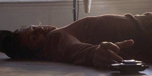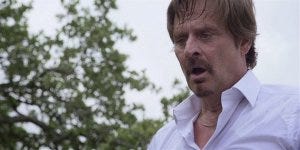 The reporter continues to confront him, the confrontation turns to shoving, and Stan gives the reporter a push and he falls, hitting his head on a rock like always happens on TV and thankfully doesn’t happen nearly as often in real life. Stan gasps, trying to help him up, but blood gushes from his head and coats Stan’s hands. He stares at his hands in horror, and Speight gives us a symbolic shot of, literally, Stan with blood on his hands.