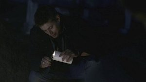 The Winchesters are busy figuring it all out in their motel room, Sam going through the lore about how to kill the walking dead and Dean going through Angela’s diary and figuring out that an entry about Neil “has unrequited ducky love written all over it.” Also he’s the professor’s TA with access to his books.