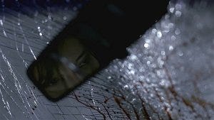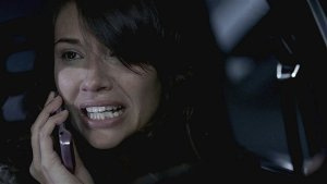 Her ex boyfriend Matt barges in trying to explain something, but Angela runs out and gets in her car, distraught, which never ends well. She then makes the mistake of picking up her ex’s phone call while she’s driving at night in the rain and crying and…you can see where this is going. Head on collision, shattered windshield, blood dripping onto the phone, Angela’s dead eyes open and staring while her ex on the phone asks “Angela?”