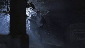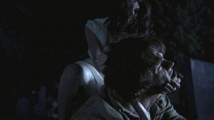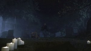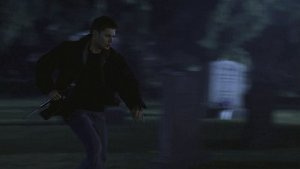 Just in time, Dean fires to get her off of Sam and then she chases him through the moonlit and candlelit graveyard, as he lures her to her grave.