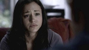 Meanwhile, ex boyfriend Matt is watching old videos of Angela. We don’t know for sure, but it’s implied that Matt wasn’t the best of boyfriends – he had a temper and was controlling – so we’re not all that worried about him. He’s drinking, and Angela is wearing that same frilly white dress that she died in – what is it with women and their white dresses on this show? Some weird vaguely misogynistic stereotype…