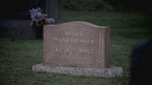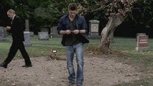 Dean pauses at Mary’s grave, and Sam asks if he wants to stay a while, but he says no.